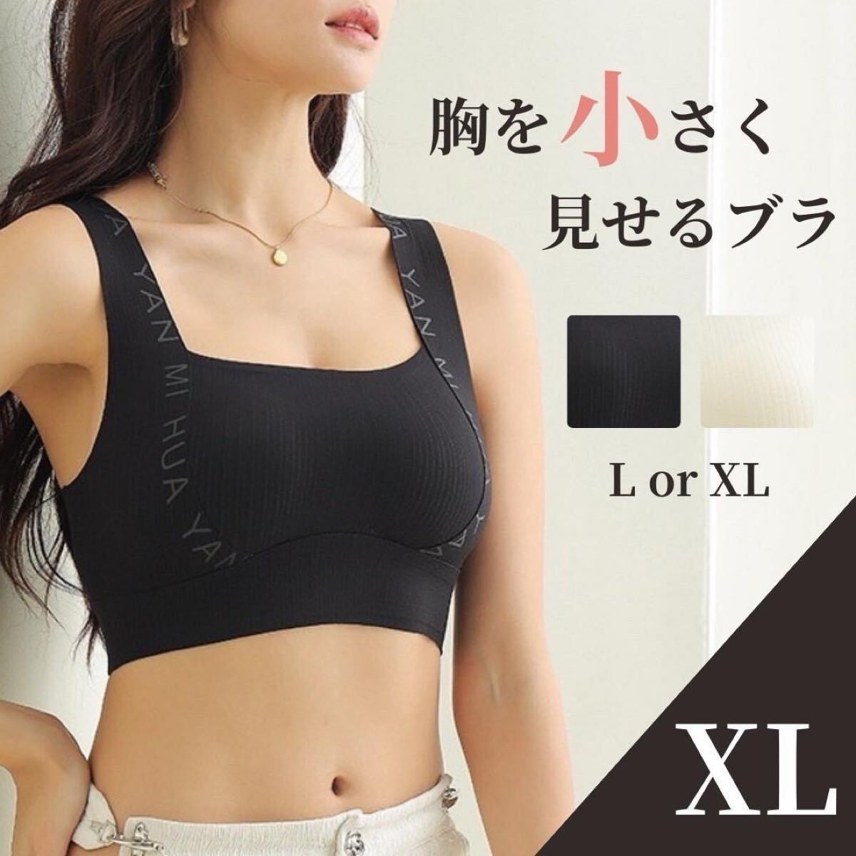 - ノンワイヤー ナイトブラ XLパッド付 揺れ防止 スポーツブラ ブラック 胸を小さく見せるブラ