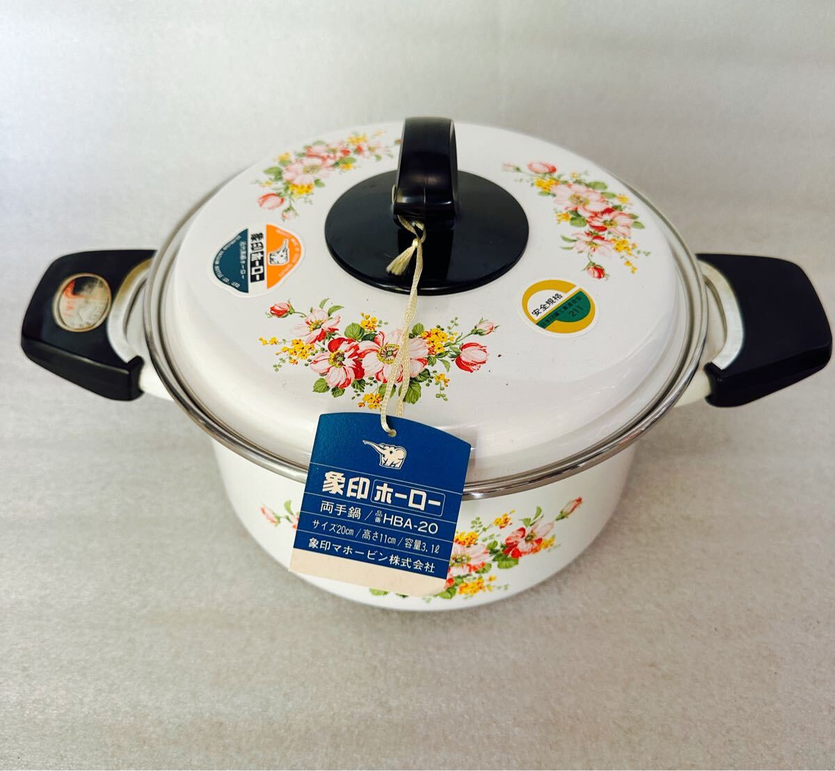 - 昭和レトロ 象印 ホーロー 花柄 鍋 HBA-20 20cm/3.1L【未使用保管品】