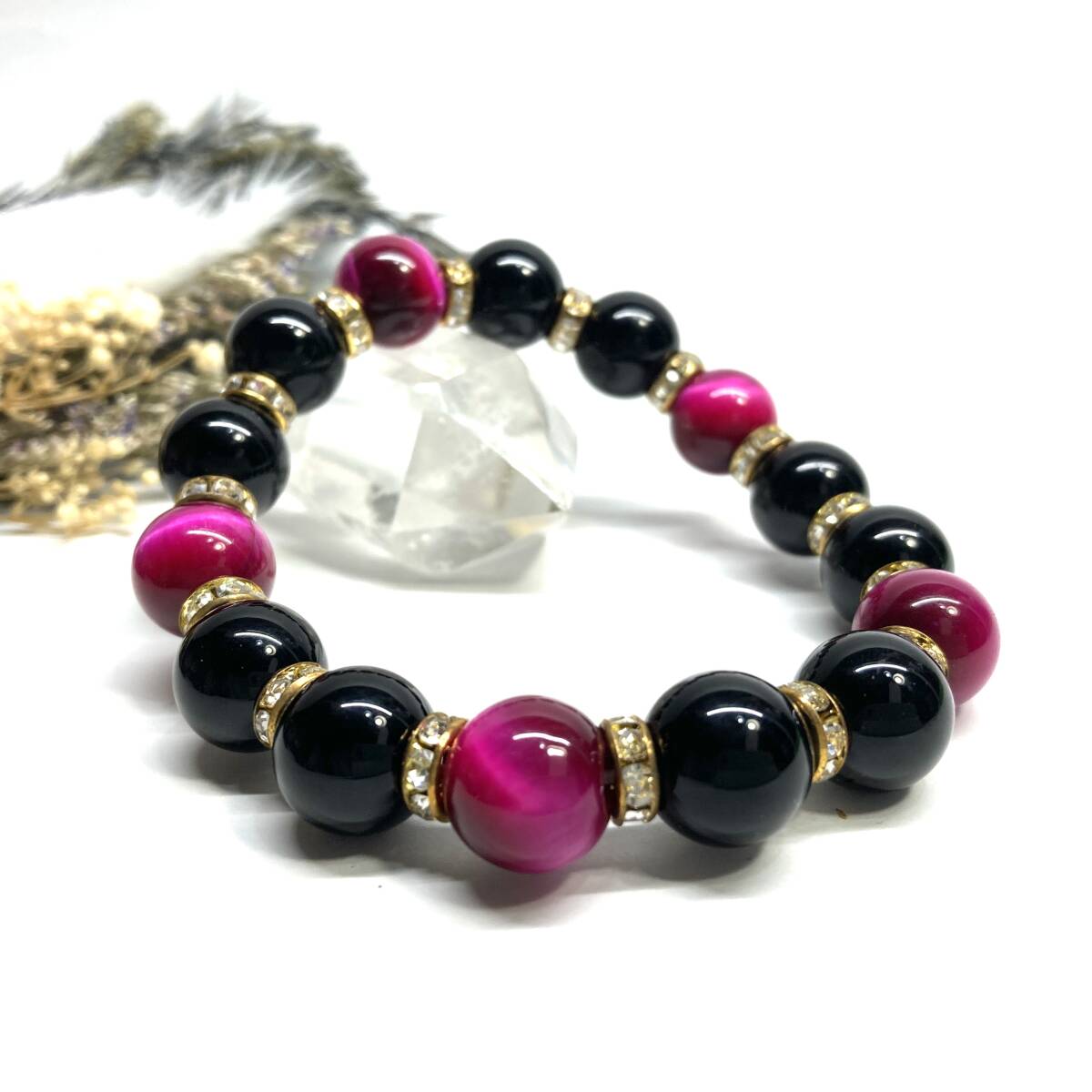 - モリオン&ピンクタイガーアイ パワーストーン ブレスレット 天然石ブレス (ゴールド) 12mm 幸運 開運 メンズ 男性