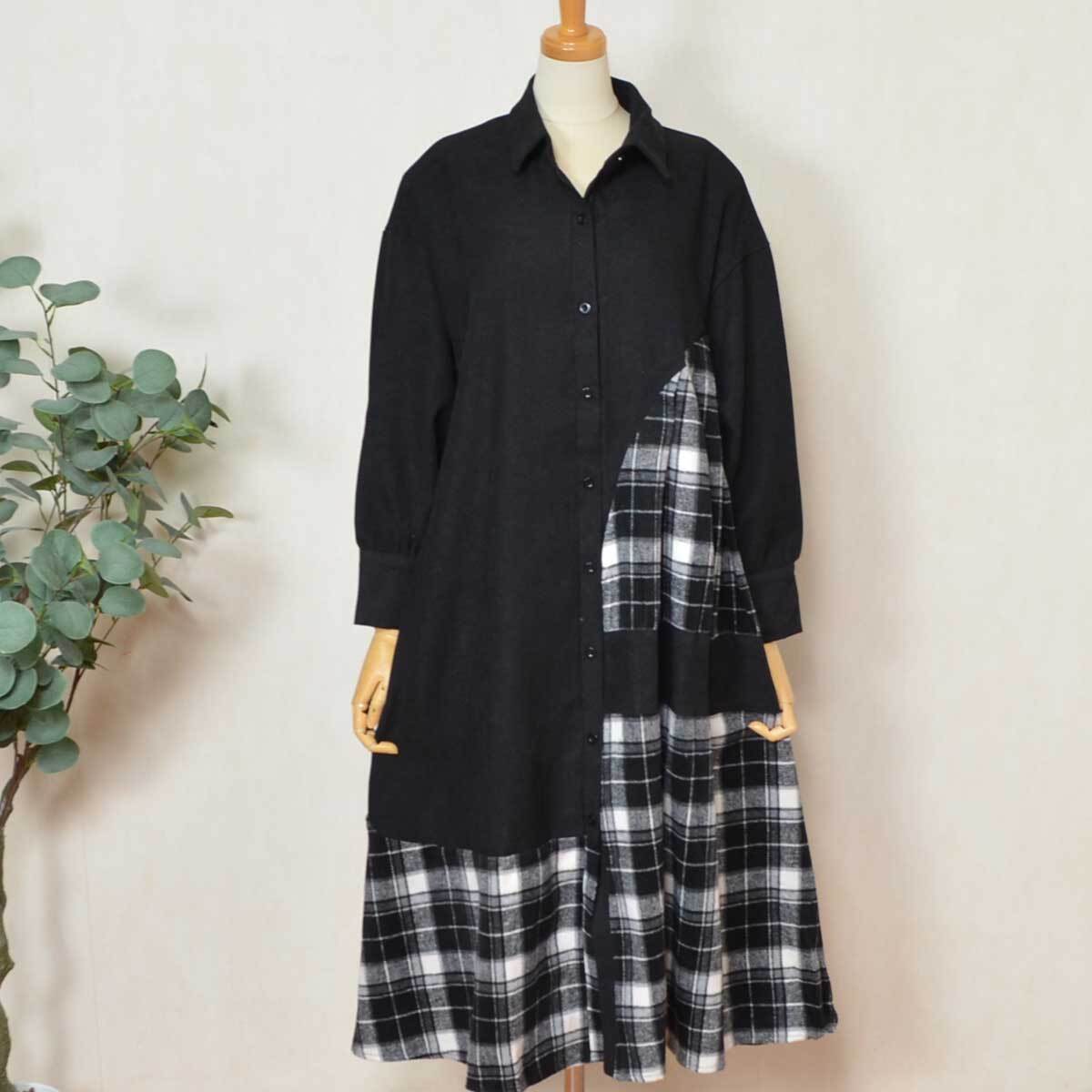 - 体型カバー◎起毛チェック配色シャツワンピース N-2935