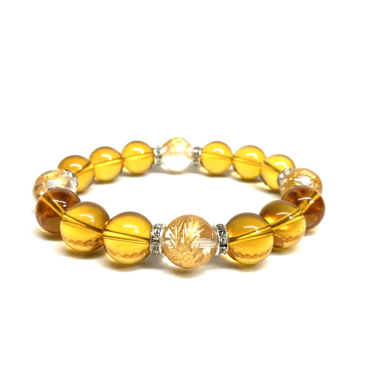 - 四神獣金彫水晶×シトリン 12mm パワーストーン ブレスレット天然石 青龍 白虎 玄武 朱雀 運気上昇 金運 健康 お守り 四神獸 四神相応 S