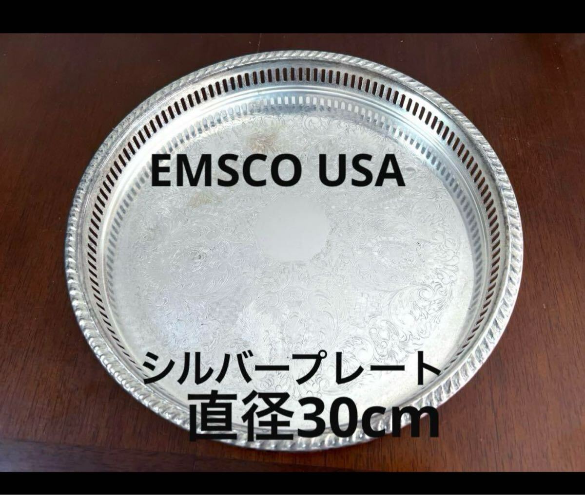 - EMSCO USA シルバープレート トレイ 30cm アンティーク調 丸盆