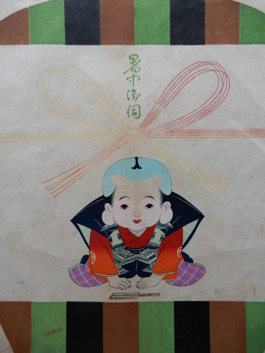 - 石版画/うちわ見本絵図「福助の暑中御伺」25.5×25.5㎝程