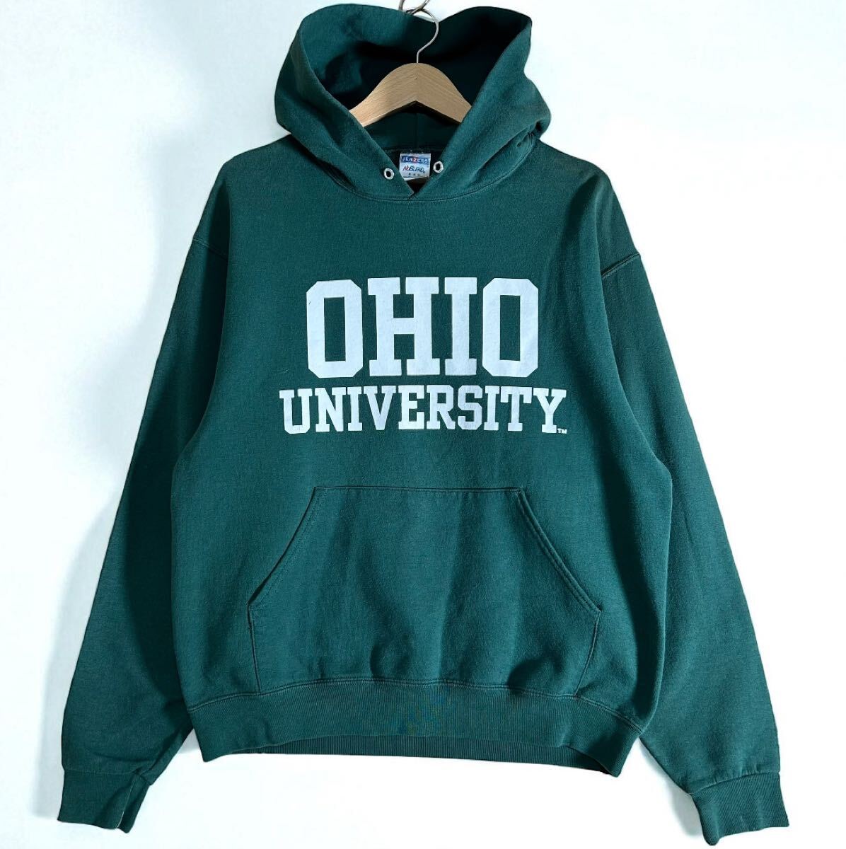 > JERZEES ジャージーズ カレッジスウェットパーカー OHIO UNIVERSITY フーディー プルオーバー グリーン 緑 メンズ M USA 古着 ヴィンテージ