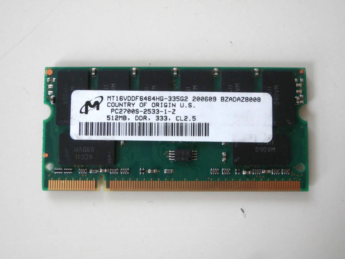 > DDR333 PC2700 200Pin 512MB Micronチップ ノート用メモリ
