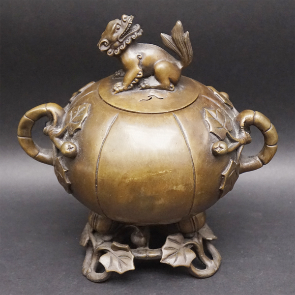 - 中国美術 中国古玩 黄銅 銅器 銅製 獅子摘火屋 香炉 香爐 骨董 香道具 茶道具 煎茶道具 重量1880g 古美術品