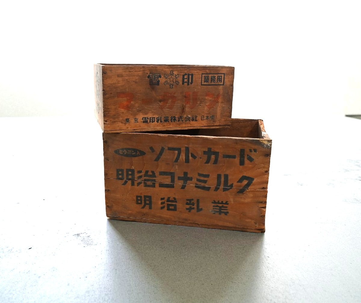 - ○可愛い木箱 2点セット 明治コナミルク 雪印マーガリン 乳業 広告 レトロ 昭和 シャビー ヴィンテージ 古道具のgplus広島 2509i