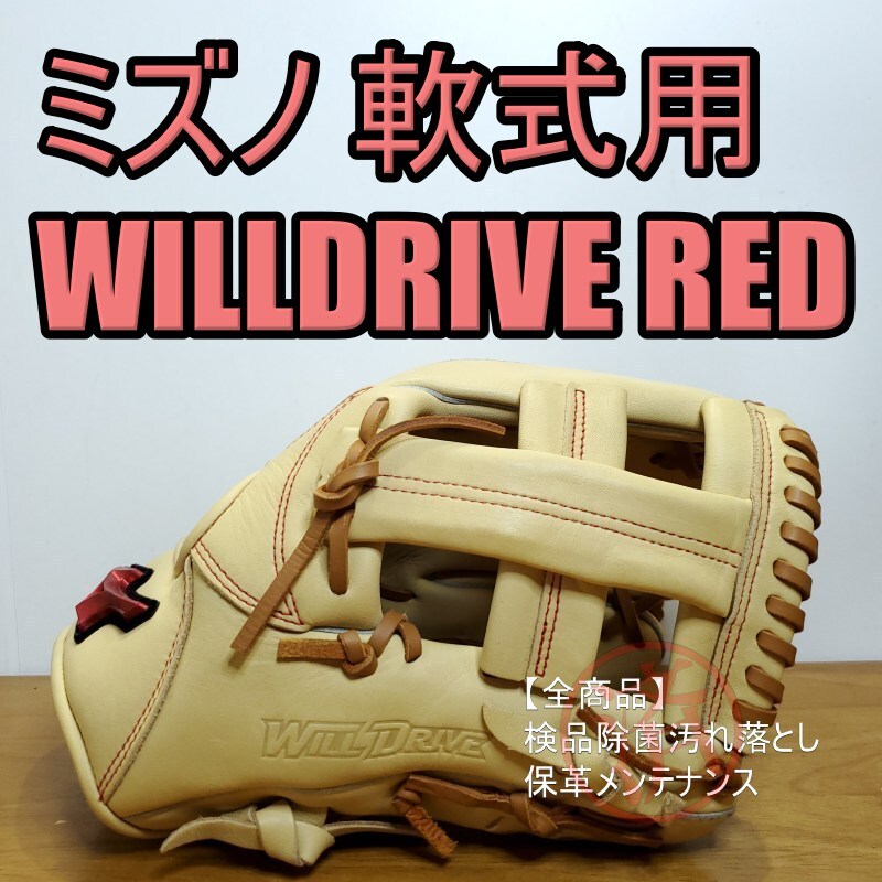 > ミズノ MIZUNO ウィルドライブ レッド 人気カラー ブロンド×コルク 良品 内野用 軟式グローブ