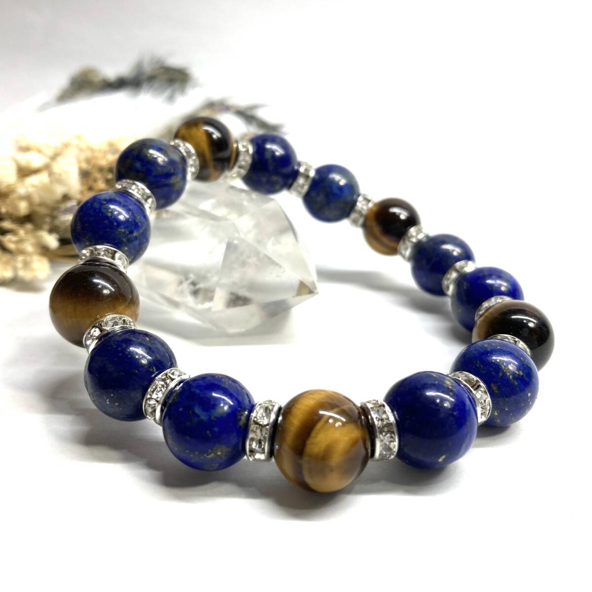 > ラピスラズリ&タイガーアイ パワーストーン ブレスレット 天然石ブレス (シルバー) 12mm 幸運 開運 メンズ 男性♪