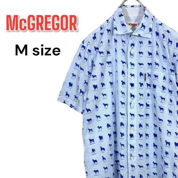 - 【レア】McGREGOR マクレガー 総柄 犬柄 DOG 半袖シャツ メンズ Mサイズ ブルー 愛犬家