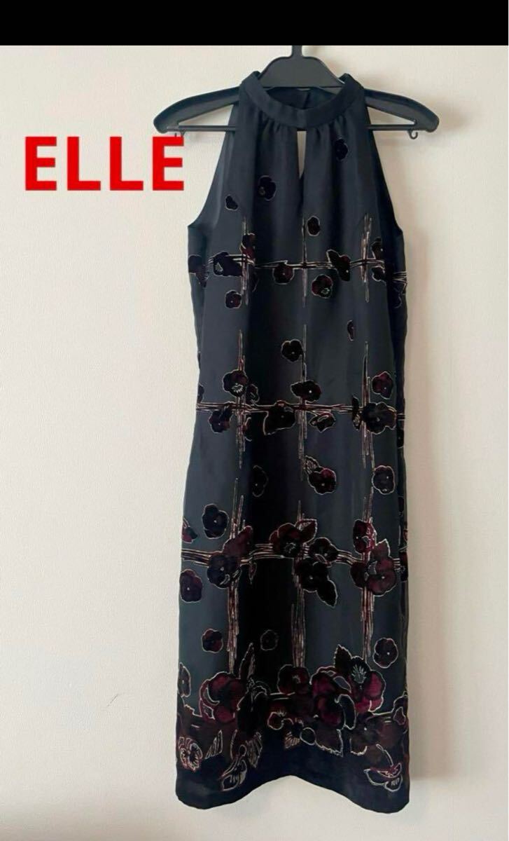 - ELLE エル フォーマル ワンピース ドレス パーティ 黒 花柄 ノースリーブ