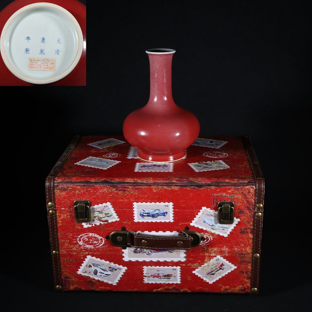 - ▼渡鶴羽▼A686清代 康熙年製 豆紅扁胴瓶・古陶磁器 ・珍品旧蔵・古賞物・時代物