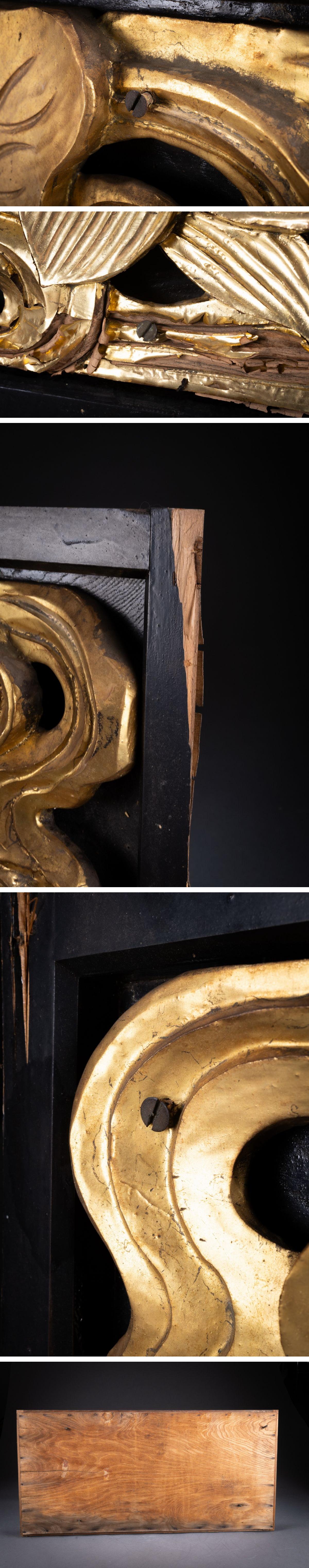 - 【雲錦】某有名オークション購入 寺出欄間 木彫色絵金彩 蓮花紋欄間(幅101㎝)和彫り 傷あり 激レア 仏教美術品7L8-300