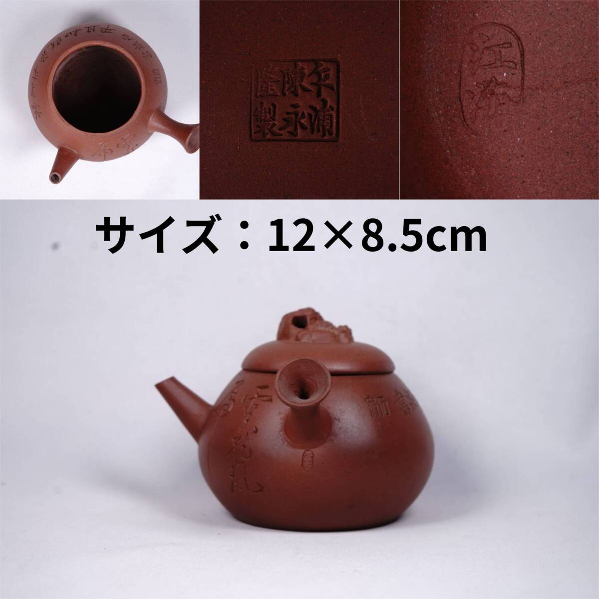 - 1004-12 関西同一蔵家委託 朱泥 急須 文字刻 蓋裏 江海 手把 乍浦陳永隆製在銘 煎茶道具 中国古玩 中国アンティーク サイズ:12×8.5cm