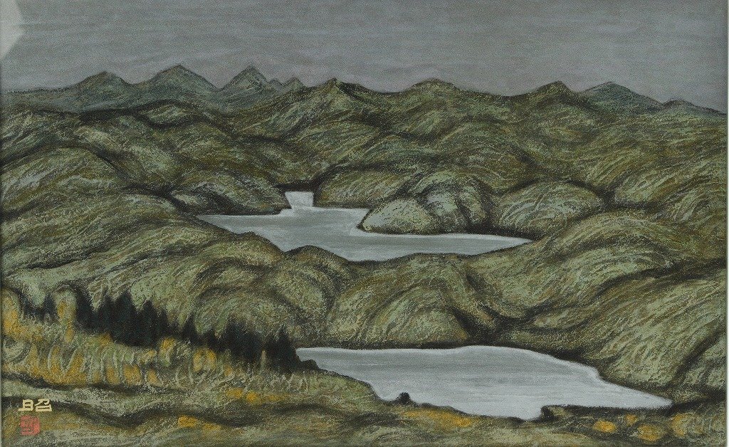 - ◆◇下保昭|(富山-京都, 1927-2018)「湖山」真作保証 肉筆日本画 額装 M10号作家シール有り コレクター様より委託出品◇◆GY1522