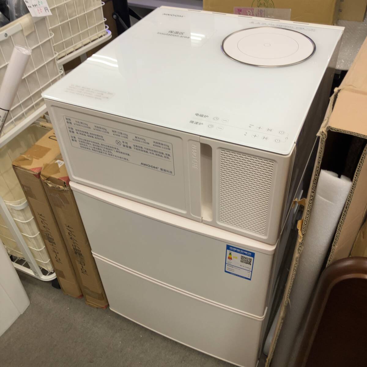 - 未使用、展示品/1台3役 クッキングヒーター(保温区付き) 電子レンジ 冷凍冷蔵庫 200V / 高さ90㎝ 横50㎝ 奥58㎝
