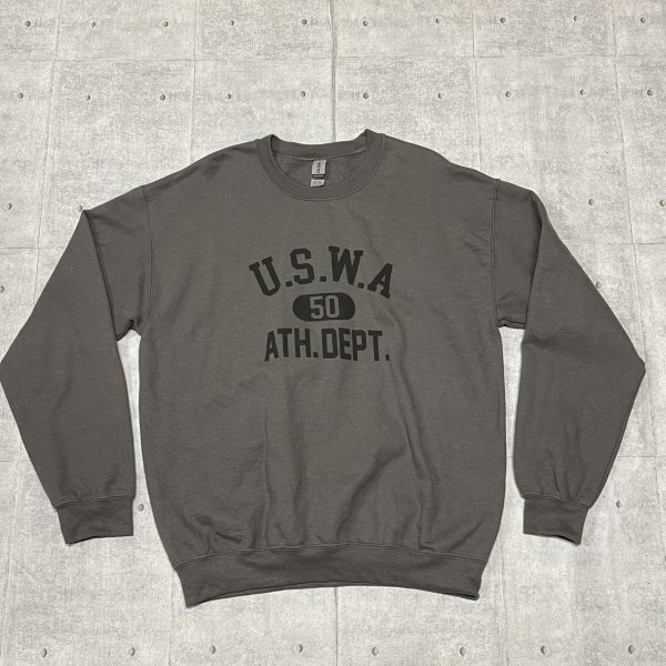 - GILDAN カレッジロゴ スウェット 裏起毛 ビッグロゴ グレー ギルダン トレーナー U.S.W.A 50 ATH.DEPT デカロゴ 50/50ボディ 石瀬7442