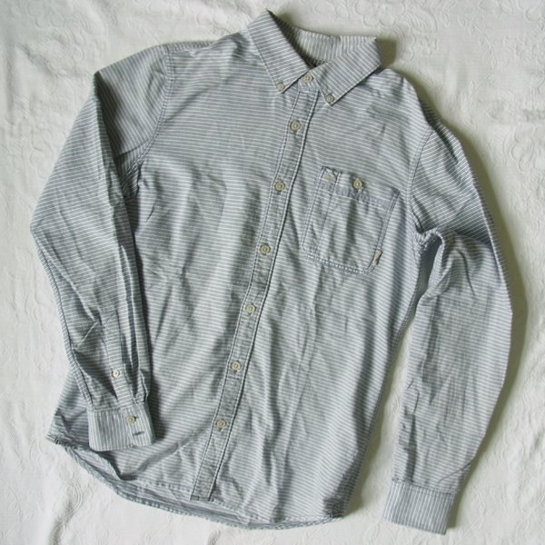 - 訳あり■VANS バンズ ボタンダウン シャツ XS 長袖 ボーダー ヒッコリー