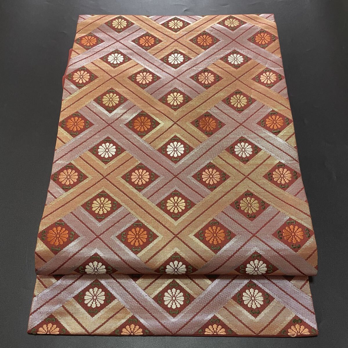 > #G095 美品 名古屋帯 九寸 唐織 綴織 金銀糸 菊 菱文 正絹 和装 和服 フォーマル帯【wellriver】