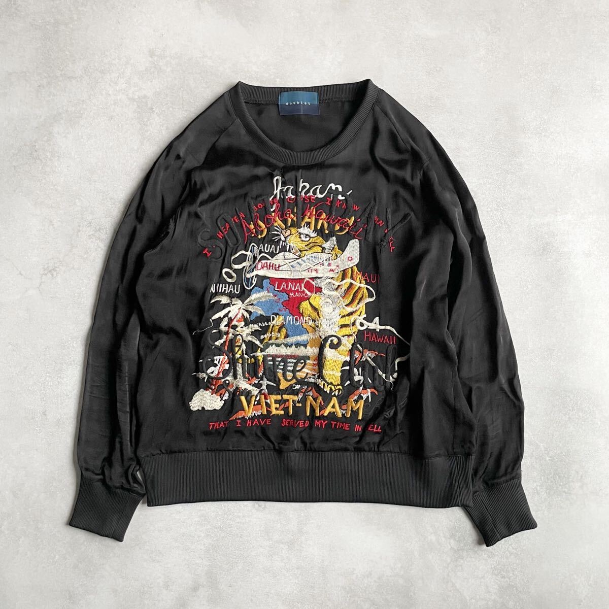 - doublet CHAOS EMBROIDERY PULLOVER カオス刺繍 虎刺繍 ダブレット プルオーバー スカジャン スーベニアジャケット ブラック レーヨン S