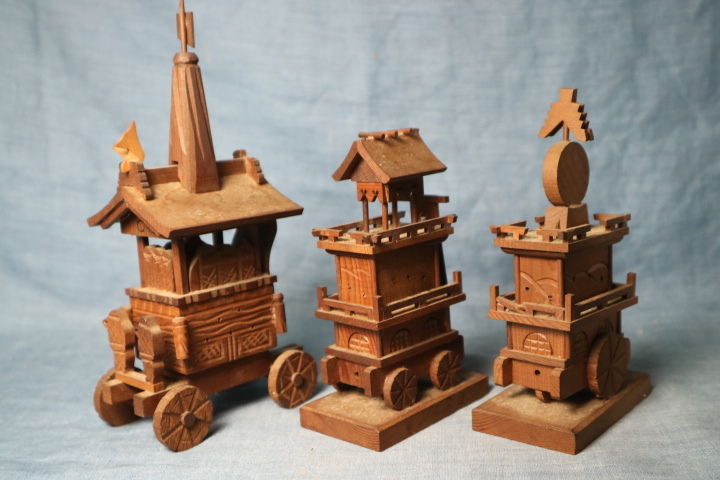 - 木製 山車 3台 検高山屋台祇園祭置物インテリア珍品希少骨董オブジェ時代