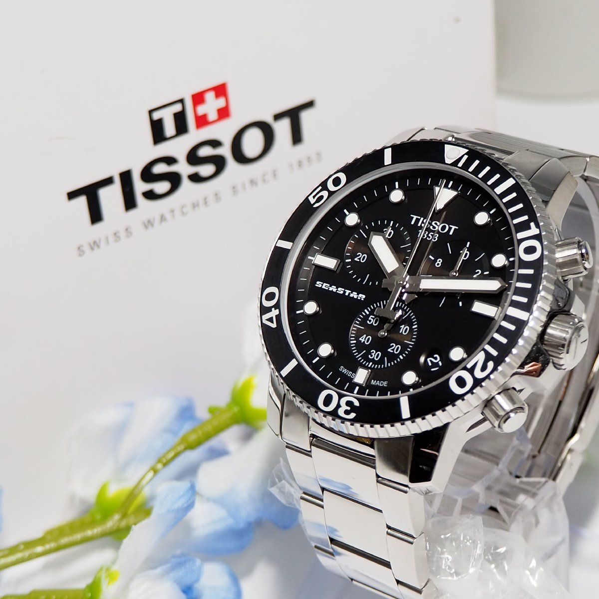 ★★★★ 美品 ティソ TISSOT シースター クロノグラフ メンズ 腕時計 箱 H286 中古★★★★