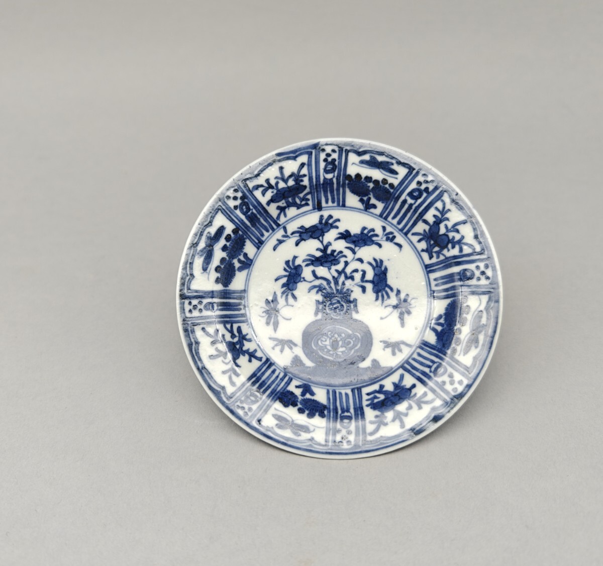 - 【懐】小飾皿 古染付 清時代 芙蓉手 青花 古美術 手描花草文 時代物 AF-026