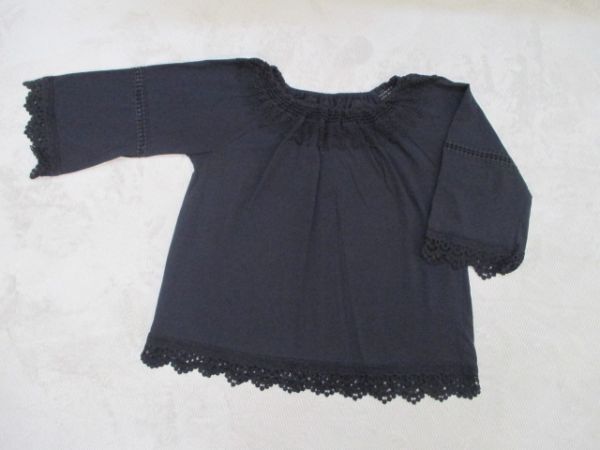 - ★フェリシモ★ レースが素敵な 7分袖カットソー L 紺