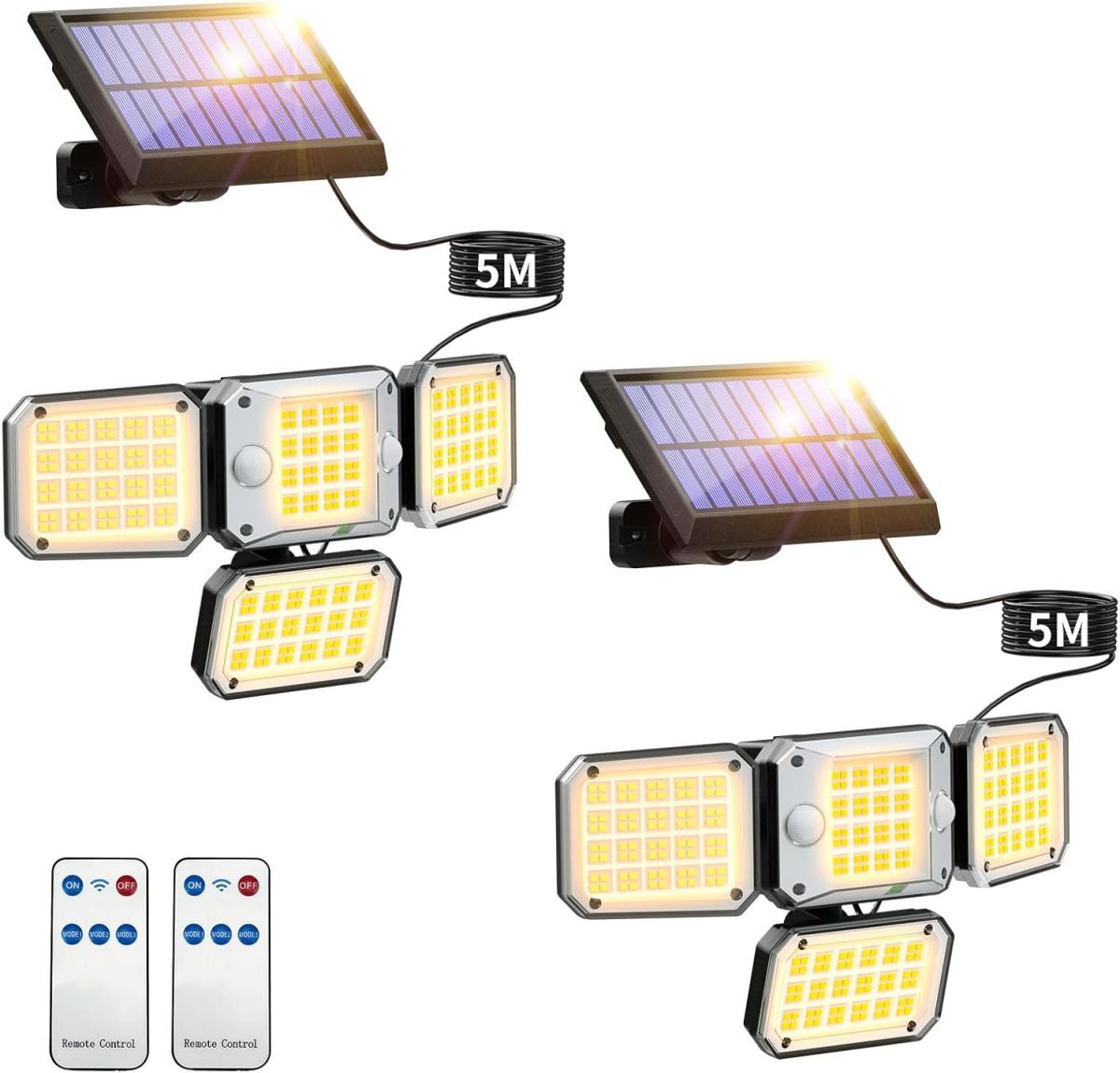 - 【新品送料無料】【最新型】GLOWDAWN ソーラーライト 屋外 センサーライト 防水 人感センサー【2センサー/294LED/4面発光/分離型】
