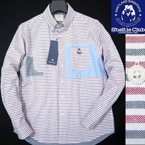> 新品 シェルティークラブ ボーダー OX切替し BD シャツ M 赤 【SH1451111_38_M】 Sheltie Club 春夏 メンズ オックスフォード 長袖