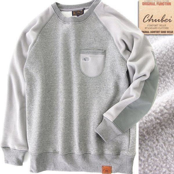 - 新品 チュウベイ 裏起毛 クルーネック スウェット LL グレー 【CH1444210_97_LL】 CHUBEI フリース 切替 プルオーバー 秋冬 メンズ