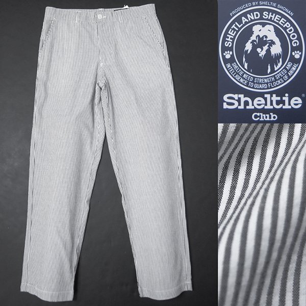 > 新品 シェルティークラブ シアサッカー ストライプ サマー パンツ L 黒白 【SH1451115_99S_L】 Sheltie Club 春夏 メンズ コットン