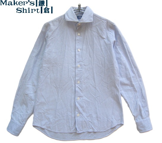 - 極上日本製!!メーカーズシャツ鎌倉 Maker's Shirt鎌倉*134 総織り柄ワイドスプレッドカラードレスシャツ S 白×紺