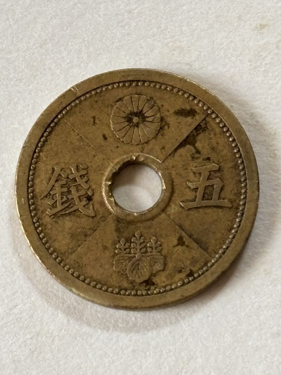 - 五銭硬貨 菊花紋章 昭和14年 硬貨 古銭 コイン 貨幣 1枚のみ