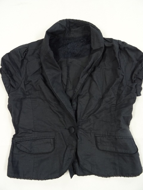 - repos ジャケット フィロント1つボタン 左右ポケット 羽織 半袖 フレンチスリーブ 黒 ブラック レディースアウター 春夏 Mサイズ