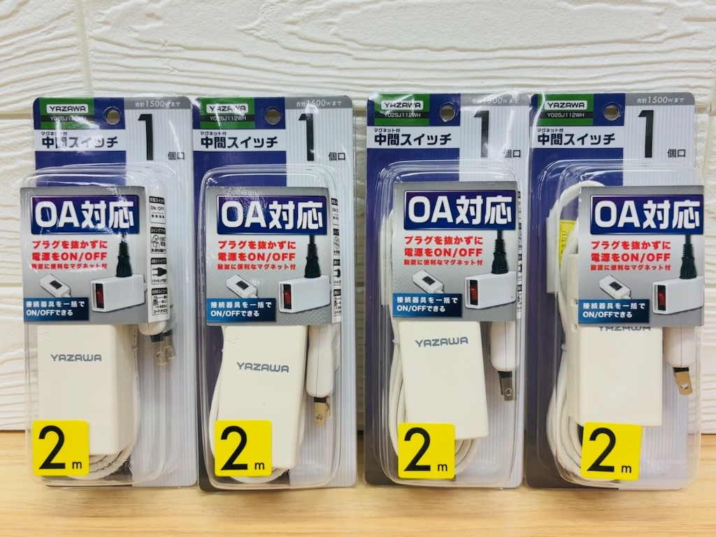 - A758 YAZAWA 4個セット OA対応 延長コード プラグを抜かずに電源をON/OFF マグネットで固定できる 中間スイッチ 1個口2m オフィス