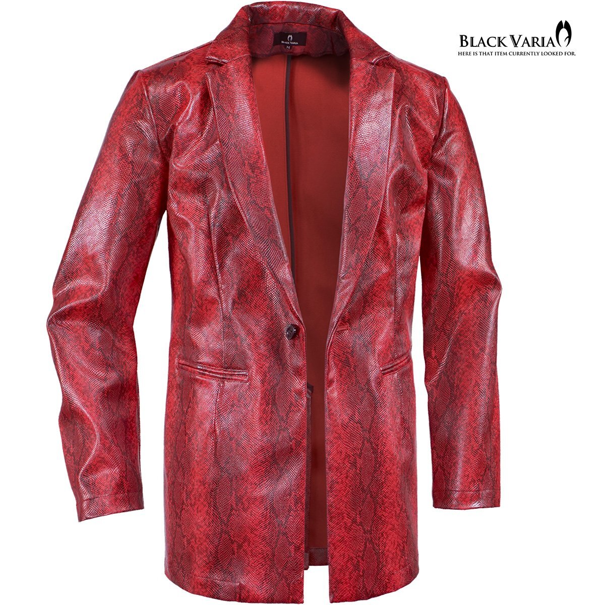 > 232700-rebk BLACK VARIA PUレザー 蛇パイソン柄 合成皮革 1釦 ロングテーラードジャケット メンズ(レッド赤ブラック黒) L バンド衣装 舞台
