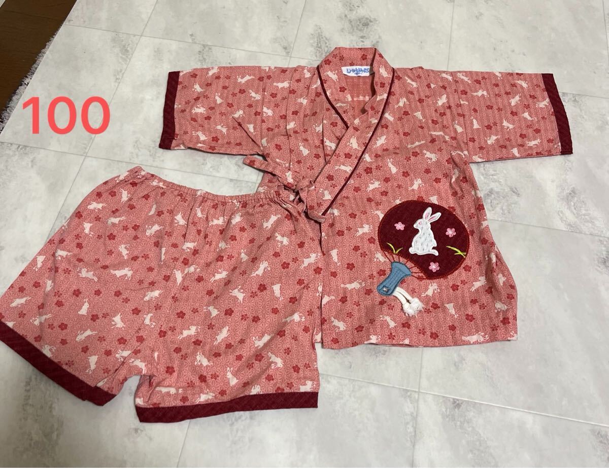 - 甚平 上下セット うさぎ ウサギ ピンク 100CM 日本製