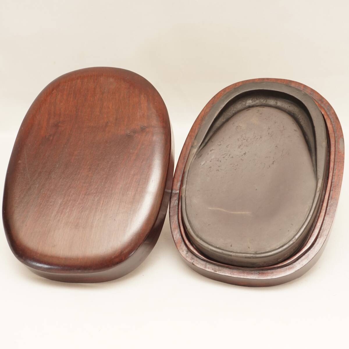 - 明〜清 萬羽軒旧蔵『 端渓 玉帯環 金線 楕円硯 』唐木箱 検索:魚脳凍 歙州硯 文房四宝 墨 硯 筆