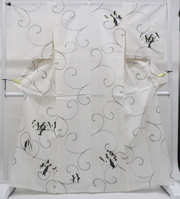- 《京都一輝堂》リサイクル着物 小紋 オリジナル 夏物 夏 ペンギン 身丈約163cm 裄丈65.5cm r7z09-608