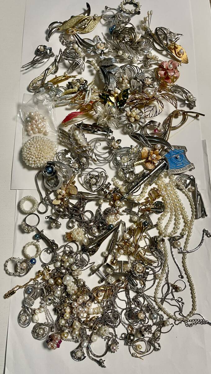 - 全て真珠 本真珠 大量アクセサリーまとめ売り ブローチ ネックレス 指輪 タイピン カフス ピンブローチなど 約845g