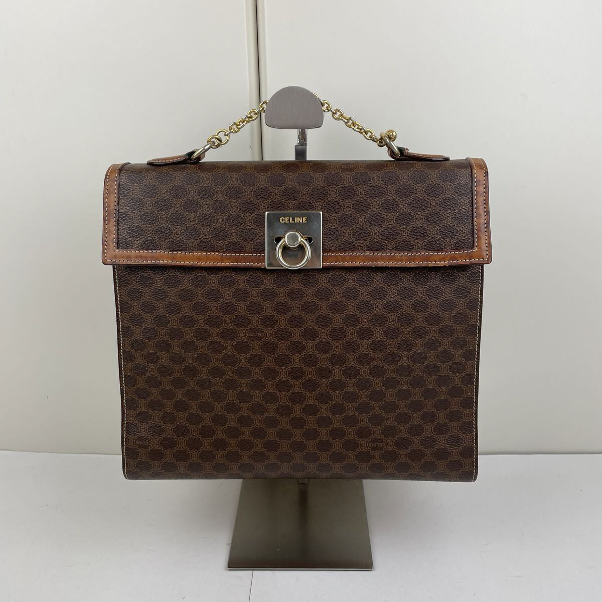 > 1円 CELINE セリーヌ ハンドバッグ マカダム柄 ガンチーニ ケリー トートバッグ ショルダーバッグ ゴールド 手提げ PVC レザー