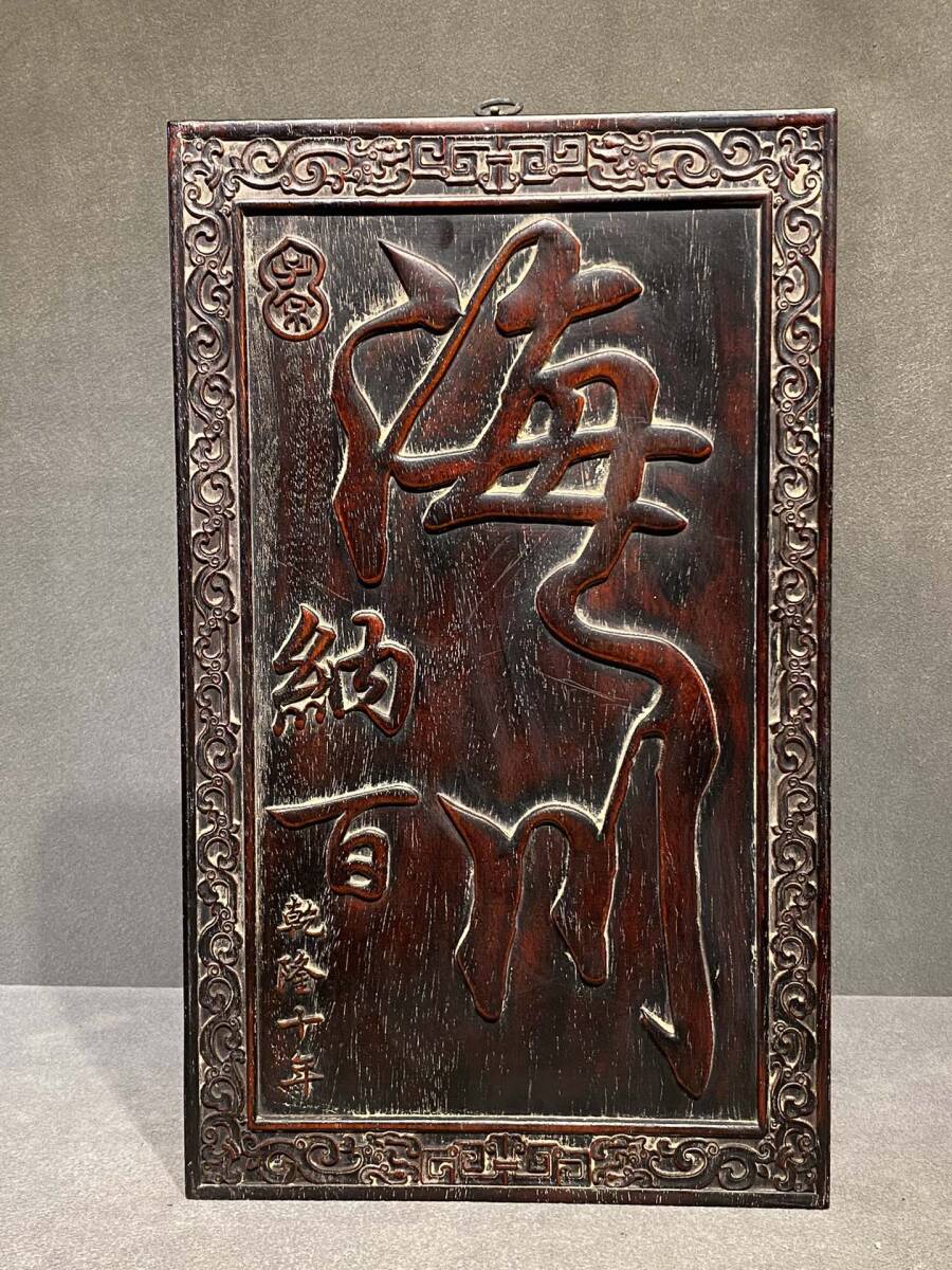 - 早期收集 旧藏 古紫檀木彫 海納百川 壁挂 墻挂 中堂挂屏 賞物 極細工 古賞物 東洋彫刻 旧家蔵出し 中国唐物 時代物 骨董 中国古美術