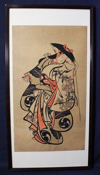 - 鳥居清信 「竹中庄大夫の踊り姿」 浮世絵 木版画 額装入 E28