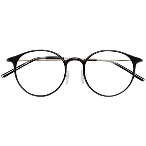 - ブラック・メタルフレーム [Dollger] ブルーライトカット メガネ 丸い 度なし 8g超軽量 TR90 UVカット 紫外線