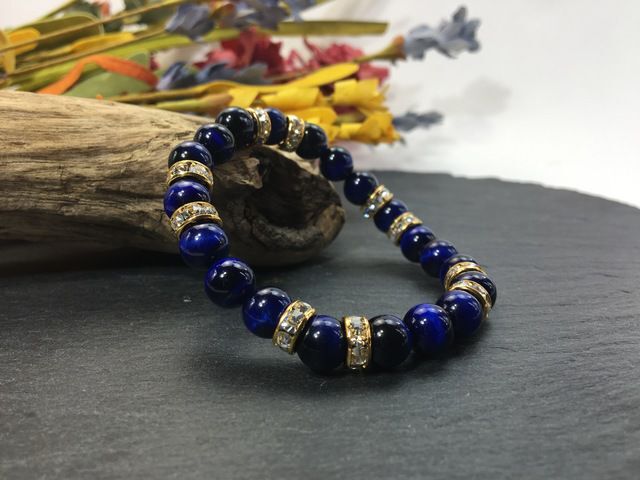 - パワーストーン ブレスレット ブルータイガーアイ (ロンデル:ゴールド) 8mm 開運 浄化 金運 仕事運 効果 レディース ブルー