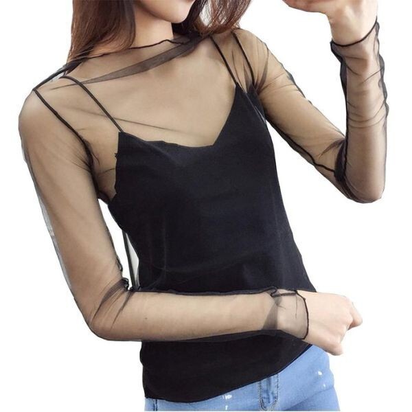 - トップス シースルー 長袖 総レース ハイネック レディース 透け透け Sサイズ 無地 ブラック