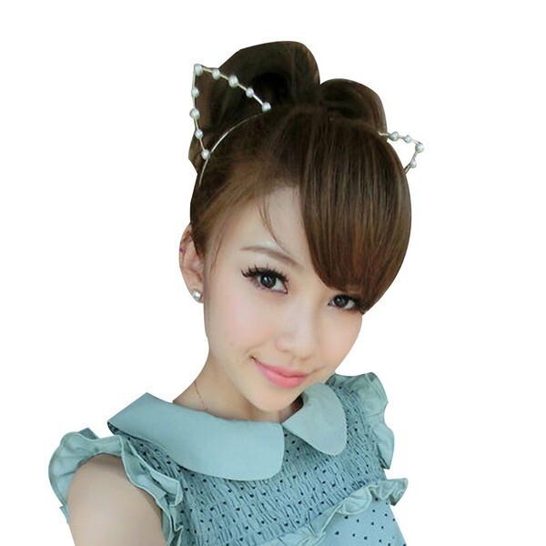 - カチューシャ 猫耳 パール付き シルバー