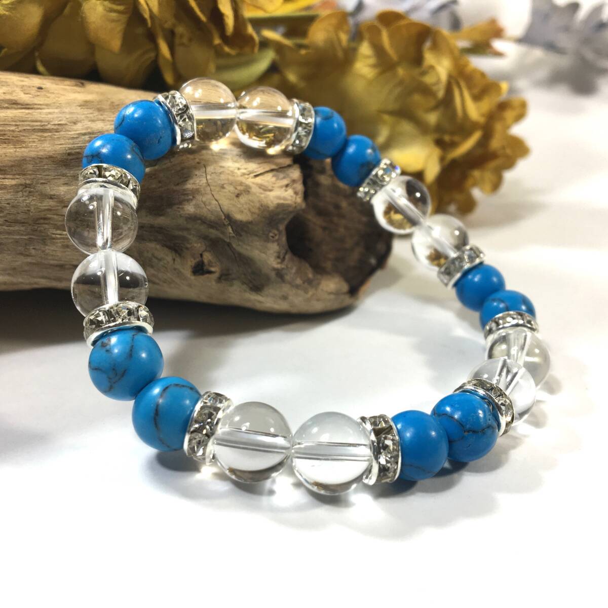- ターコイズ&水晶 パワーストーン ブレスレット 天然石ブレス シルバー 8mm /開運 浄化 4月 誕生石 クリスタル レディース 通販 #2