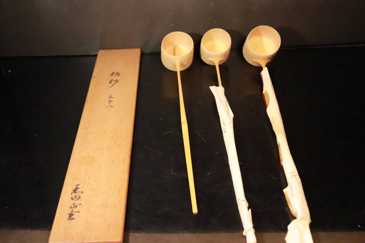 - 【hiro】千家十職! 十二代 黒田 正玄 造 竹柄杓三本入 共箱 ★検索★ 炉 建水 鉄瓶 茶碗 香炉 茶道具 風炉先 釜 茶杓